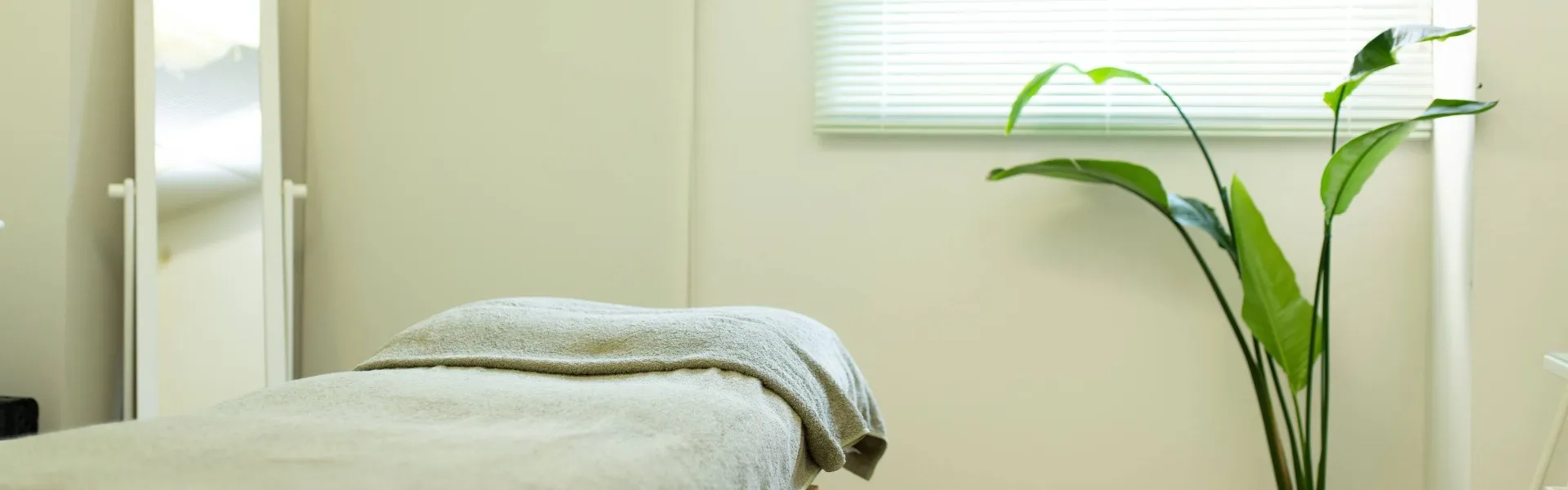 ほかのお客様を気にせず、ゆったりとリラクゼーションを受けられるよう、落ち着いたプライベートな環境を用意しました。白とベージュを基調とした落ち着いた空間づくりにこだわっています。心身ともにくつろげる癒しのひとときを提供することにより、明日への活力をチャージするお手伝いをいたします。